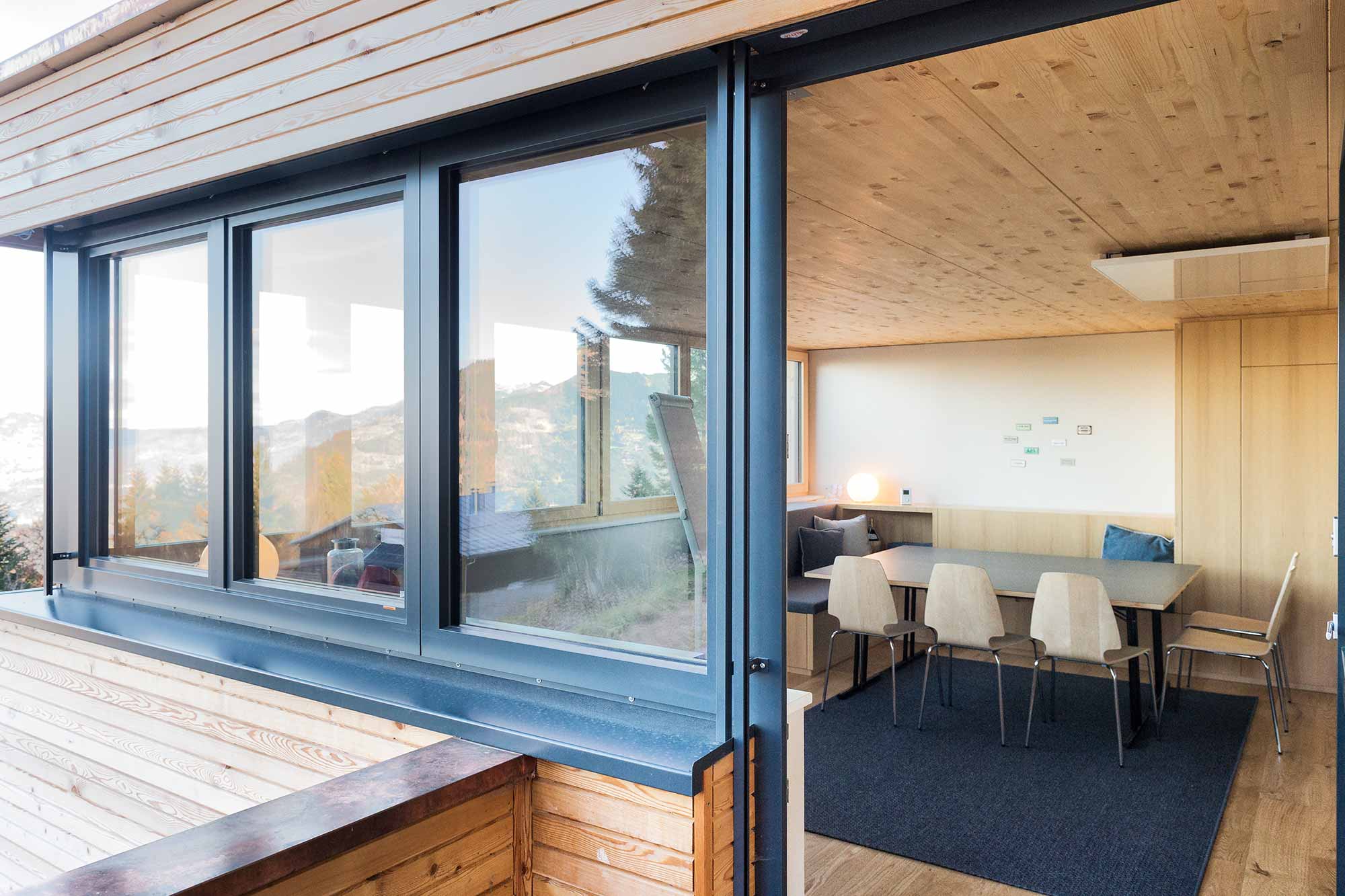 Entdecken Sie stimmungsvolle Einblicke in den „Raum für Weitblick“ auf der Bazora – inspirierende Seminaratmosphäre, moderne Ausstattung und faszinierende Panoramablicke, die Kreativität und Austausch beflügeln.